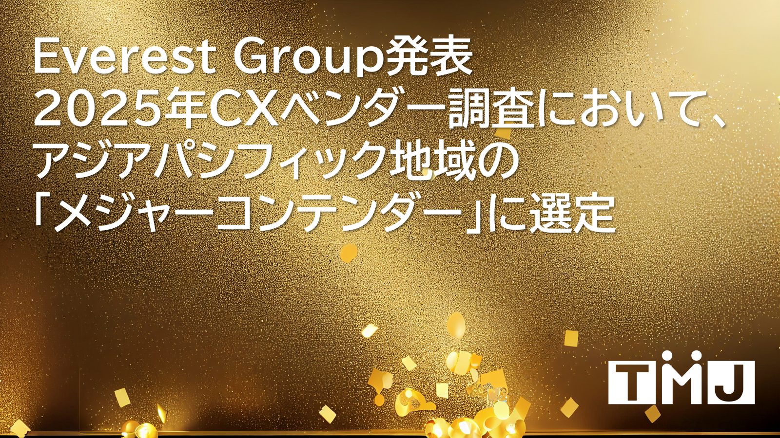 コンタクトセンター・バックオフィス(事務処理センター)の構築・運営を行うセコムグループの株式会社TMJ(本社:東京都新宿区、代表取締役社長:丸山 英毅、以下TMJ)は、市場調査会社のEverest Groupが2025年9月に発表したCXMサービスベンダー調査である「Customer Experience Management (CXM) Services PEAK Matrix® Assessment 2025」において、アジアパシフィック地域の「メジャーコンテンダー」に選定されました。本年度評価では、2つの評価軸のうち「Vision and capability」で評価が向上し、アジアパシフィックにおけるCXMサービスベンダーとして存在感を継続的に示せています。