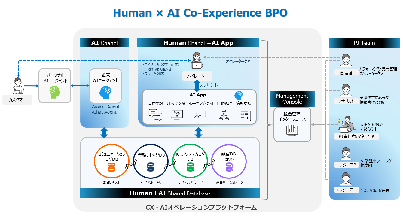 2027年、私達は人とAIが共創する “Human×AI Co-Experience BPO” を掲げ、CX・AIオペレーションプラットフォームとBPOサービスの提供を通じて、クライアント、顧客、従業員の感動体験を生み出します。